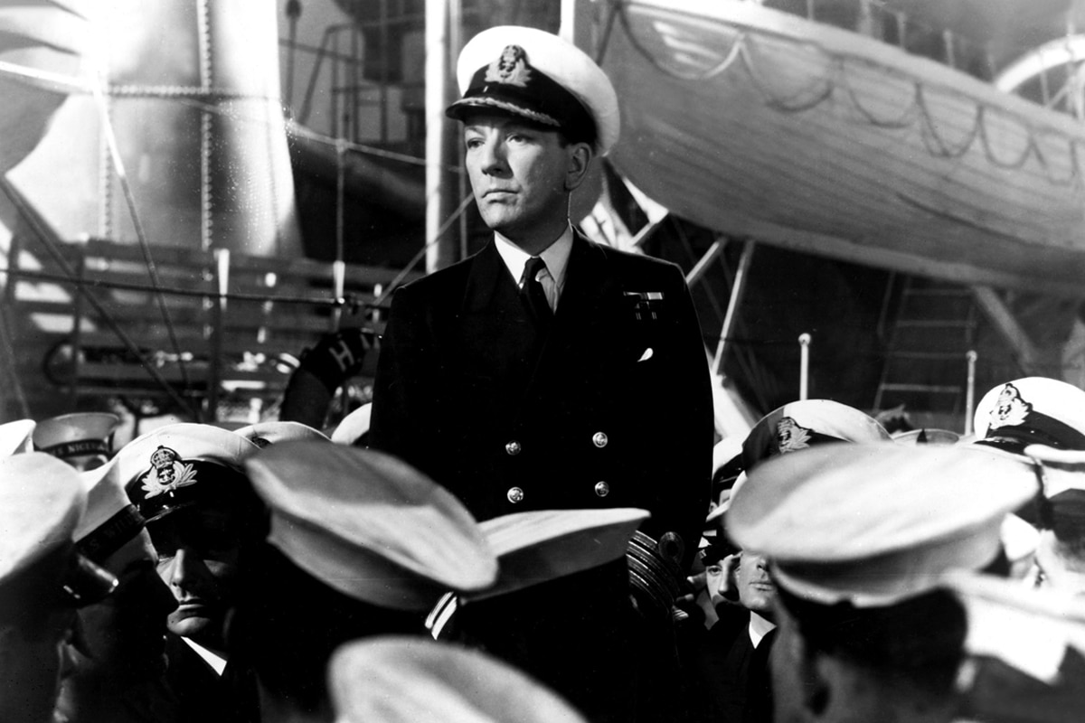 The first night featured three movies that star John Mills. In Which We Serve was an unlikely subject for its writer-director-composer-star Noël Coward, best known for witty, sophisticated plays, songs and performances that Time magazine called “a combination of cheek and chic, pose and poise.” With Great Britain at war with Germany for nearly two years, producers approached Coward to write a patriotic propaganda screenplay. He agreed as long as he was guaranteed complete control.