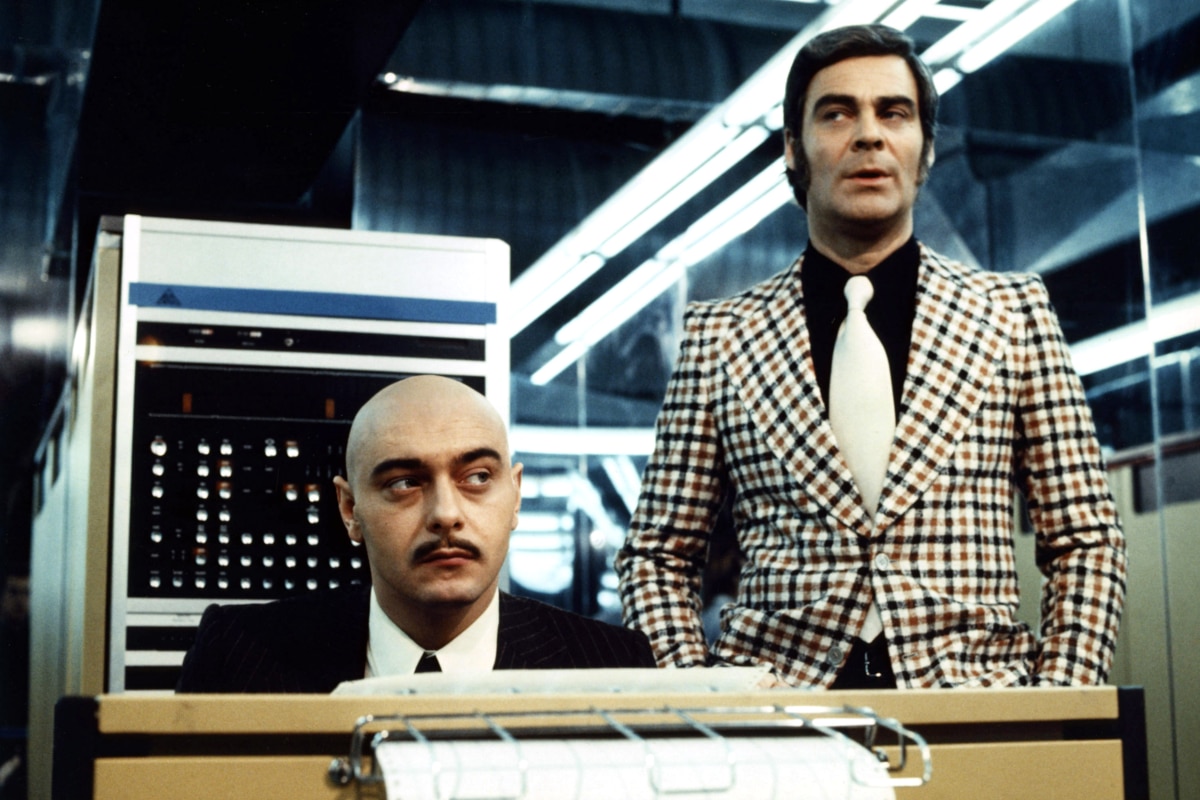 "It's much more than a headache," complains corporation scientist Vollmer (Adrian Hoven), whose sudden death sets World on a Wire in motion. "So much that my head's about to explode." The line cannot, in retrospect, help but evoke David Cronenberg's Scanners (1981) but Fassbinder doesn't need to pop heads to blow minds. Where modern filmmakers would truck in boatloads of CGI, Fassbinder (and production designer Kurt Raab, a frequent collaborator) merely fills his frame with mirrored surfaces, both to evoke the possibility of multiple realities occupying the same space but also to point to the signifier of mankind's essential discomfiture with (and denial of) self-revelation. One senses a kinship to Jean-Luc Godard's Alphaville (1965) in the merger of computers with trench coats and fedoras - Godard's leading man Eddie Constantine even turns up in a cameo, along with such Fassbinder troupers as Margit Carstensen, Günther Lamprecht, Ulli Lommel, Ingrid Caven, Kurt Raab, and Elhedi ben Salem, star of Ali: Fear Eats the Soul (1974). World on a Wire's haunting closing theme is the 1968 early Fleetwood Mac instrumental "Albatross," which sets the perfect note of melancholy for a tale that may end happily or unhappily, depending on your point of view.